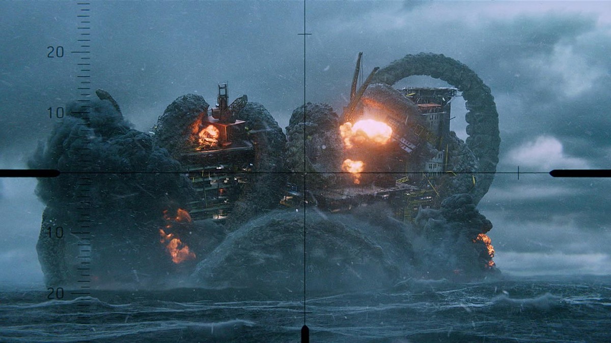 Кракена тут мало. В основном в виде гигантских щупалец, которые лезут туда и сюда по океанским глубинам, и даже из вредности потопят норвежскую нефтяную платформу. Но щупальца что надо, прямо как настоящие!